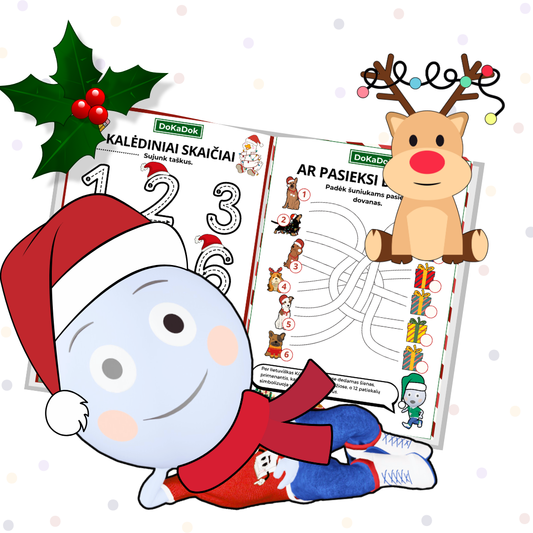 „Dokadok Kalėdos“ – smagi ir lavinanti užduočių knygelė patiems mažiausiems, 2–4 metų vaikams, kupina spalvinimo, taškelių jungimo ir skirtumų paieškos užduočių, kurios lavina vaiko dėmesį, motoriką ir kūrybiškumą bei pripildo švenčių džiaugsmo. Tai puikus būdas kartu su vaiku pasinerti į kalėdinę nuotaiką ir smagiai leisti laiką!